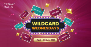 - Look out for the mystery WildCard in your Cathay Malls Mobile App e-wallet every Wednesday between 10.00am – 11.00am.